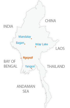 Ngapali Beach is one of the famous land for resort, and second largest beach in the Southeast Asia. The sunset of Ngapali Beach is beyond description, an experience for any visitor to Ngapali Beach. The place itself is very pleasant, natural and unspoilt – a place for peace and tranquility- the best ground for sunbathing and recreation such as beach strolling, cycling etc.